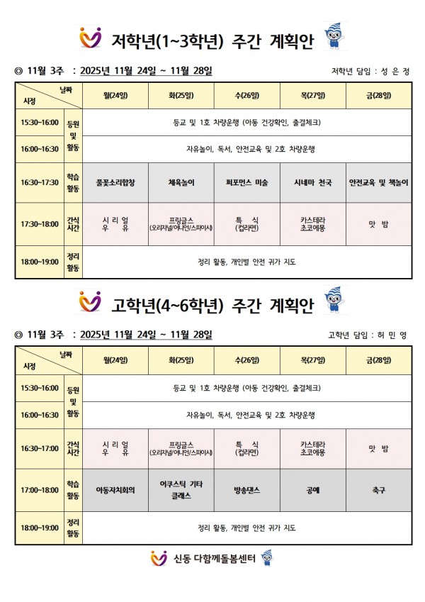 11월 4주차 주간계획안 페이지 정보 작성자 최고관리자 댓글 0건 조회 30회 작성일 25-11-20 21:29 본문 11월 4주차 주간계획안 공유드립니다 : ) 목록 이전글12월 1주차 주간계획안 25.12.01 다음글11월 3주차 주간계획안 25.11.14 댓글목록 댓글목록 등록된 댓글이 없습니다.