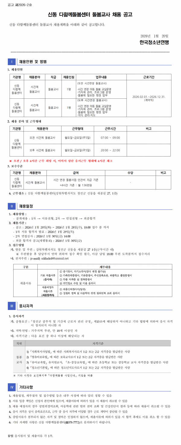 - 2026-2호 신동 다함께돌봄센터 채용공고.hwp (56.5K) 4회 다운로드 | DATE : 2026-01-20 18:36:22
